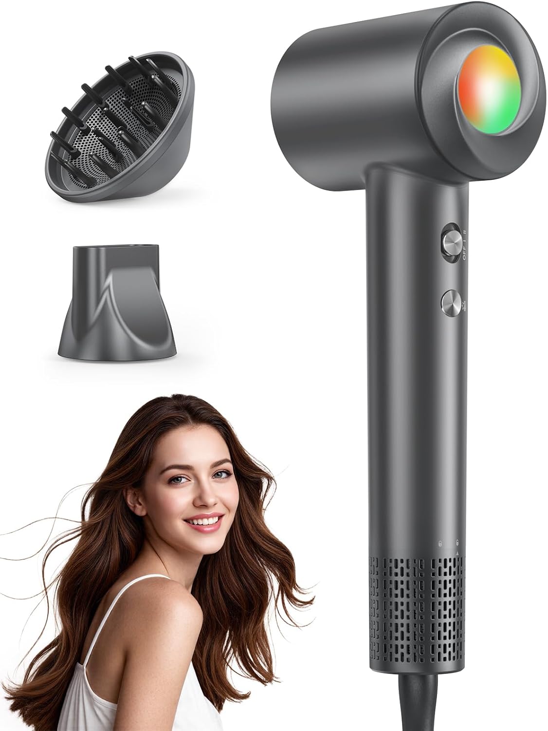 - 500 Milioni di Ioni Negativi, Capelli Lisci, Lucenti: Durante l’asciugatura, il flusso ionico sigilla l’umidità naturale e riduce l’elettricità statica e effetto crespo del 40%. Così puoi ottenere capelli come dal parrucchiere a casa tua, capelli setosi e lucenti. Phon capelli include ugello magnetico a 360° e diffusore per ricci/lisci perfetti.